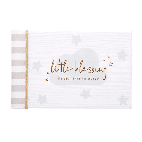 Faith based baby memory book with bible verses throughout.