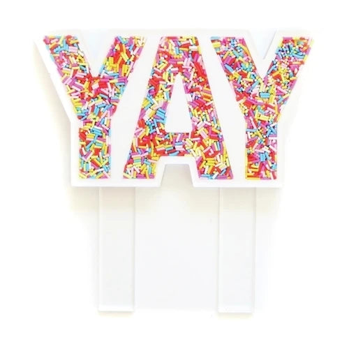 Kailo Chic Acrylic YAY Cake Topper. YAY cake topper with encased plastic sprinkles.