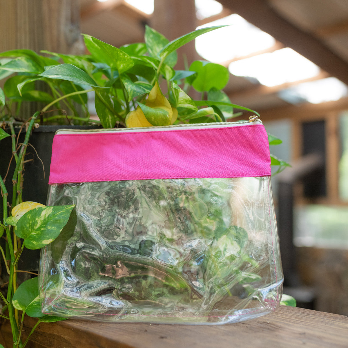 Kids Hot Pink Zipper Pouch, Clear Vinyl, 11" L x x 9" H