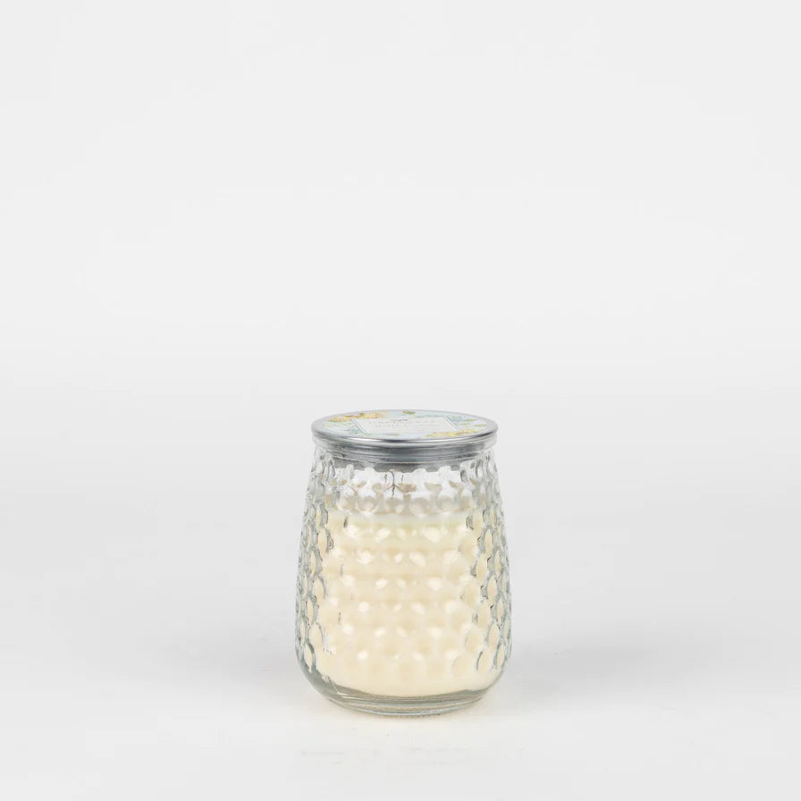 With a clear, glass hobnail textured jar and a silver lid, our Signature Candle is the perfect match for any style. Fill your home with inviting Greenleaf fragrances that make any space feel cozy!