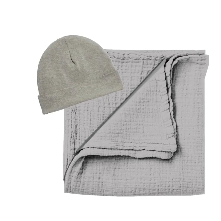 Kids Grey Swaddle & Beanie Set, Size: 44 W X 44 L, Triblend 50% Poly, 25% Cotton, 25% Rayon Jersey