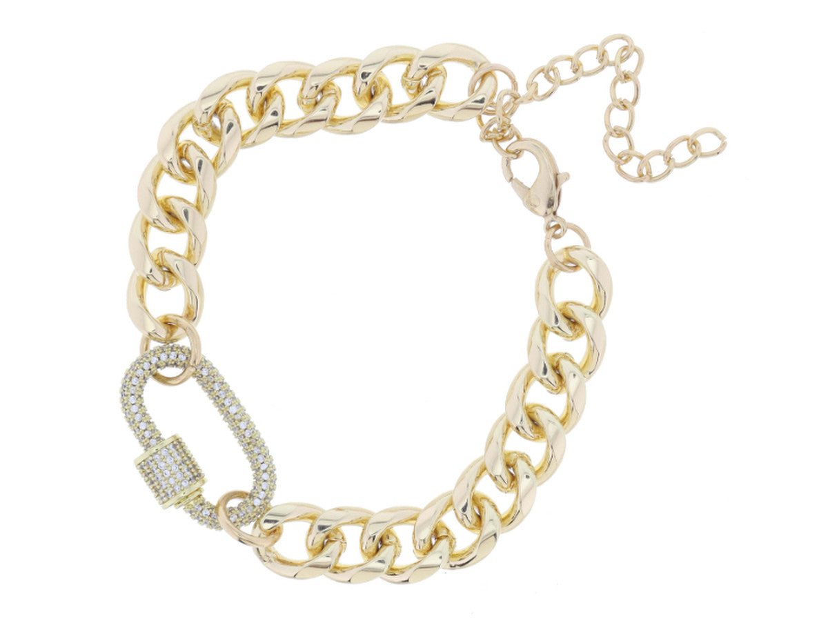 Jane Marie - Shiny Gold Chunky Chain w/ Crystal Pave Carabiner