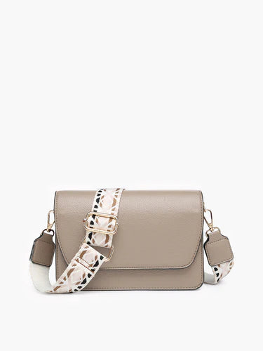 Noah may look simple, but its unique guitar strap really makes it pop! This flapover crossbody features three compartments, including two zippered areas and card slots, and snaps closed for extra security. The guitar strap is adjustable and removable! Made of vegan leather. Dimensions: 8.5"L x 5.5"H x 2.5"; drop 27"