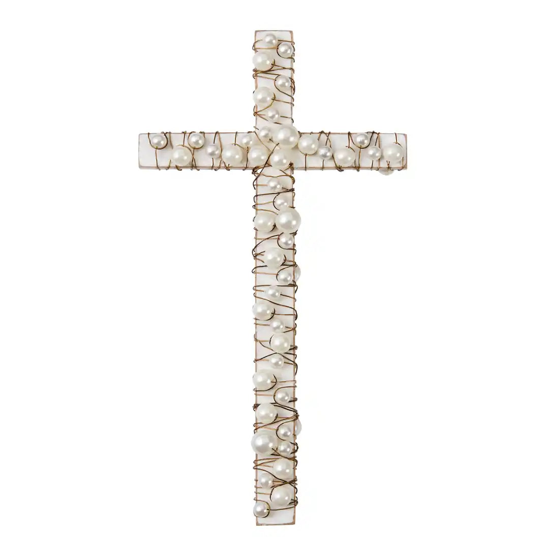 Mud Pie - WHITE WOOD CROSS WITH PEARLS