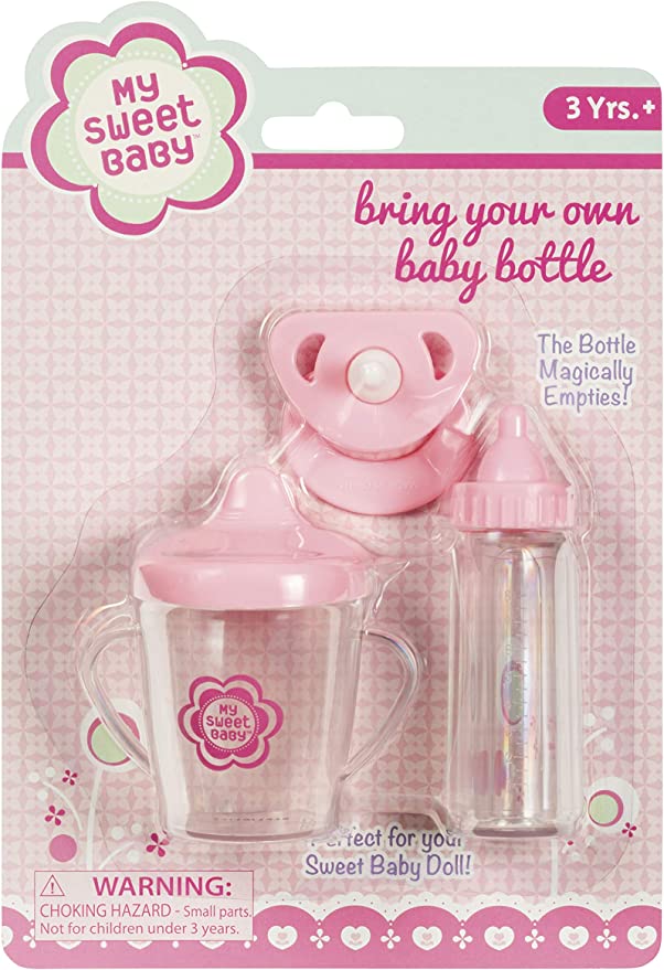 - A sweet doll accessory set that includes a magic bottle, sippy cup and pacifier