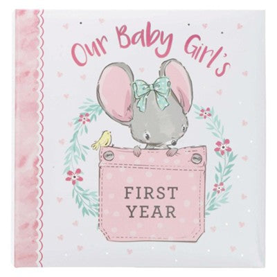 Our Baby Girl’s First Year Memory Book captures the precious memories of baby’s first year. It offers space to record memorable moments and milestones like her first steps and her first tooth, scrapbooking pages for photographs, and a special keepsake pocket for baby’s hospital bracelet or a lock of hair from her first haircut.