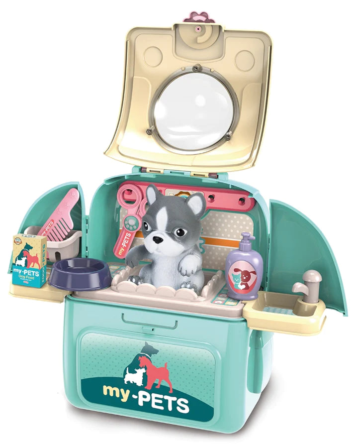 - Scissors, Comb, Shampoo, Treats, Food, Water Bowl, Sink, Dog, Assembly Pieces, Decorative Decals